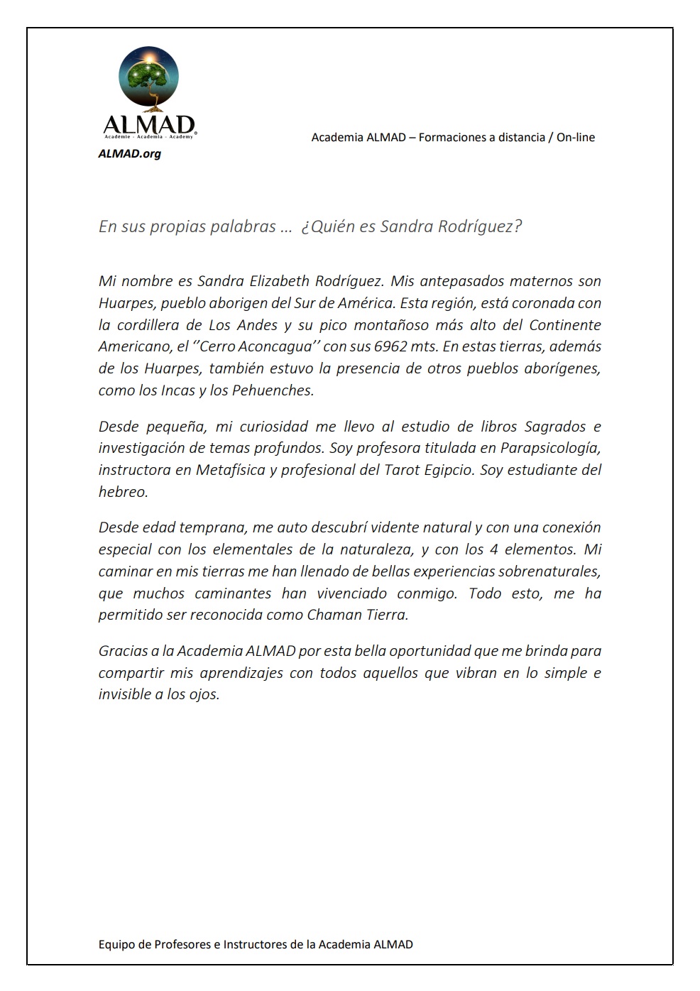 Cursos dictados por la Profesora Chaman Sandra Rodriguez